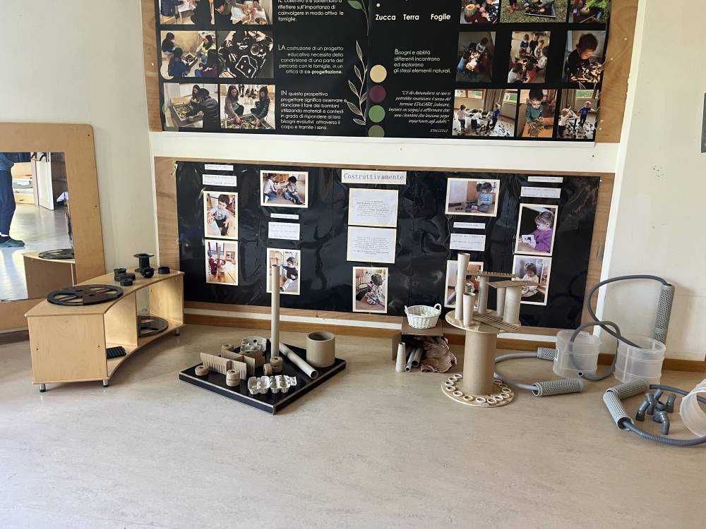 Gli ambienti sono pensati e offerti, ai bambini che li abitano, come situazioni che permettono loro sperimentazioni globali.